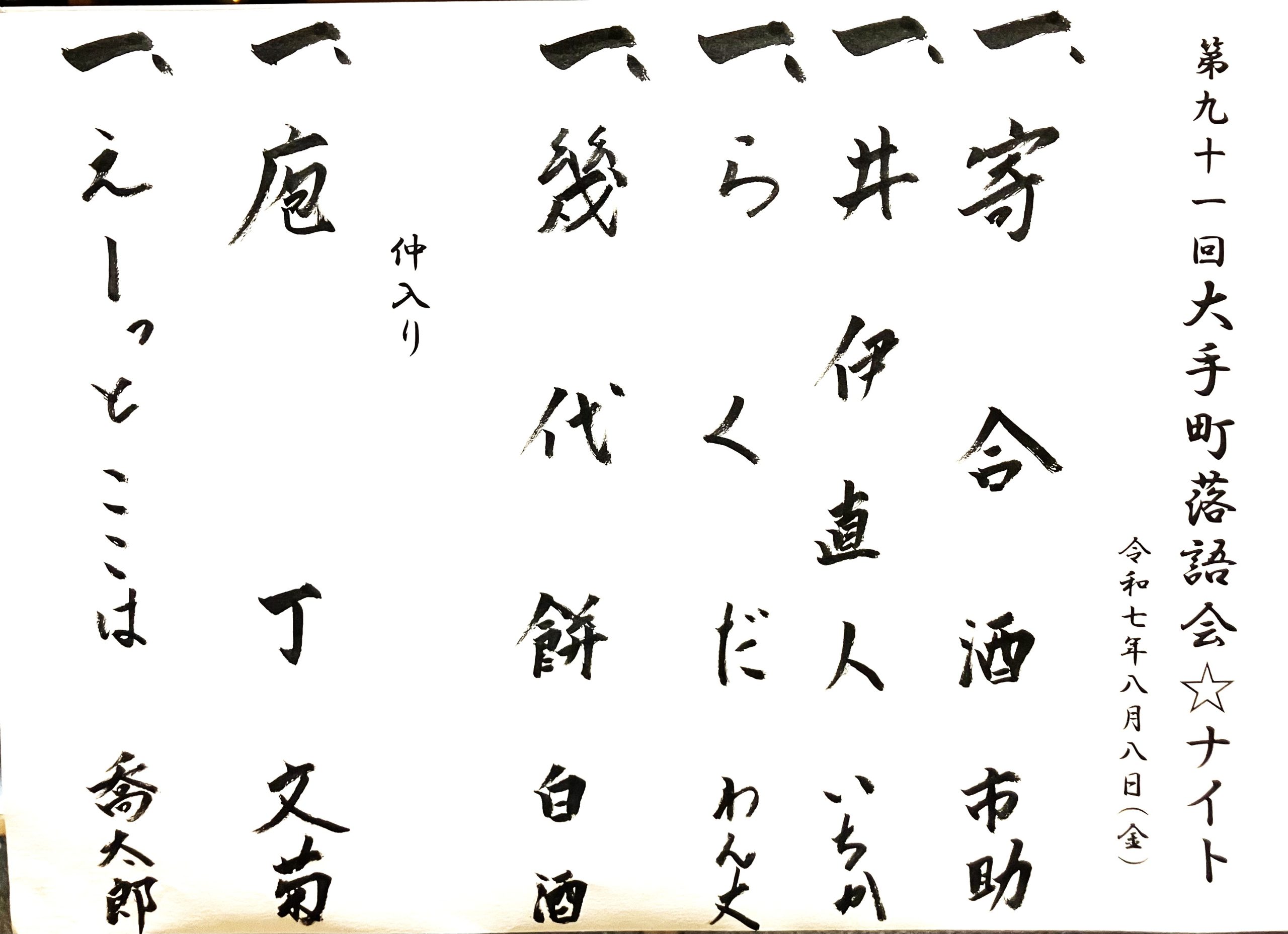 【演目】J亭スピンオフ企画 41 白酒・一之輔 大手町二人会