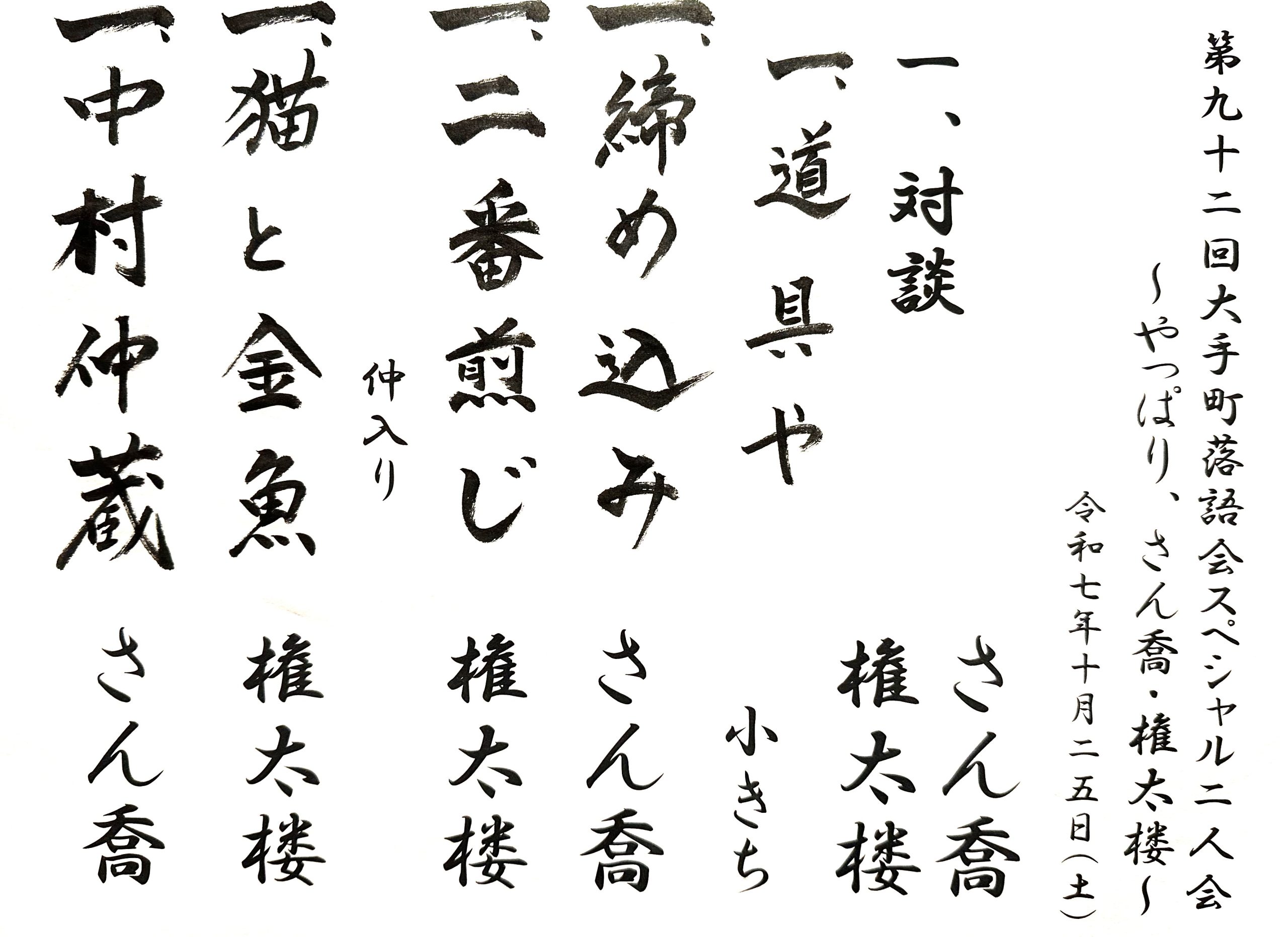 【演目】第九十二回大手町落語会スペシャル二人会~やっぱり、さん喬・権太楼~