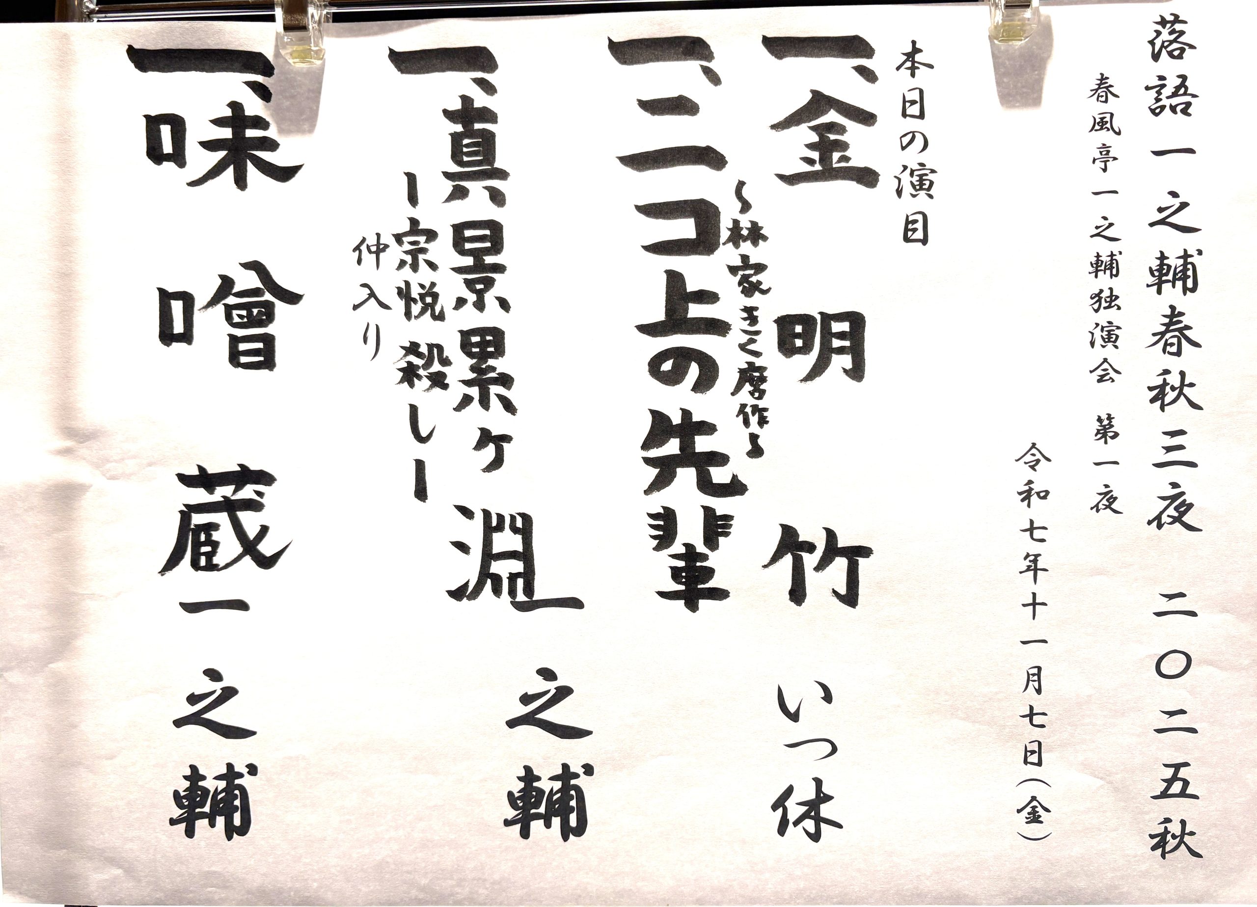 【演目】落語一之輔/春秋三夜 2025秋<第二夜>