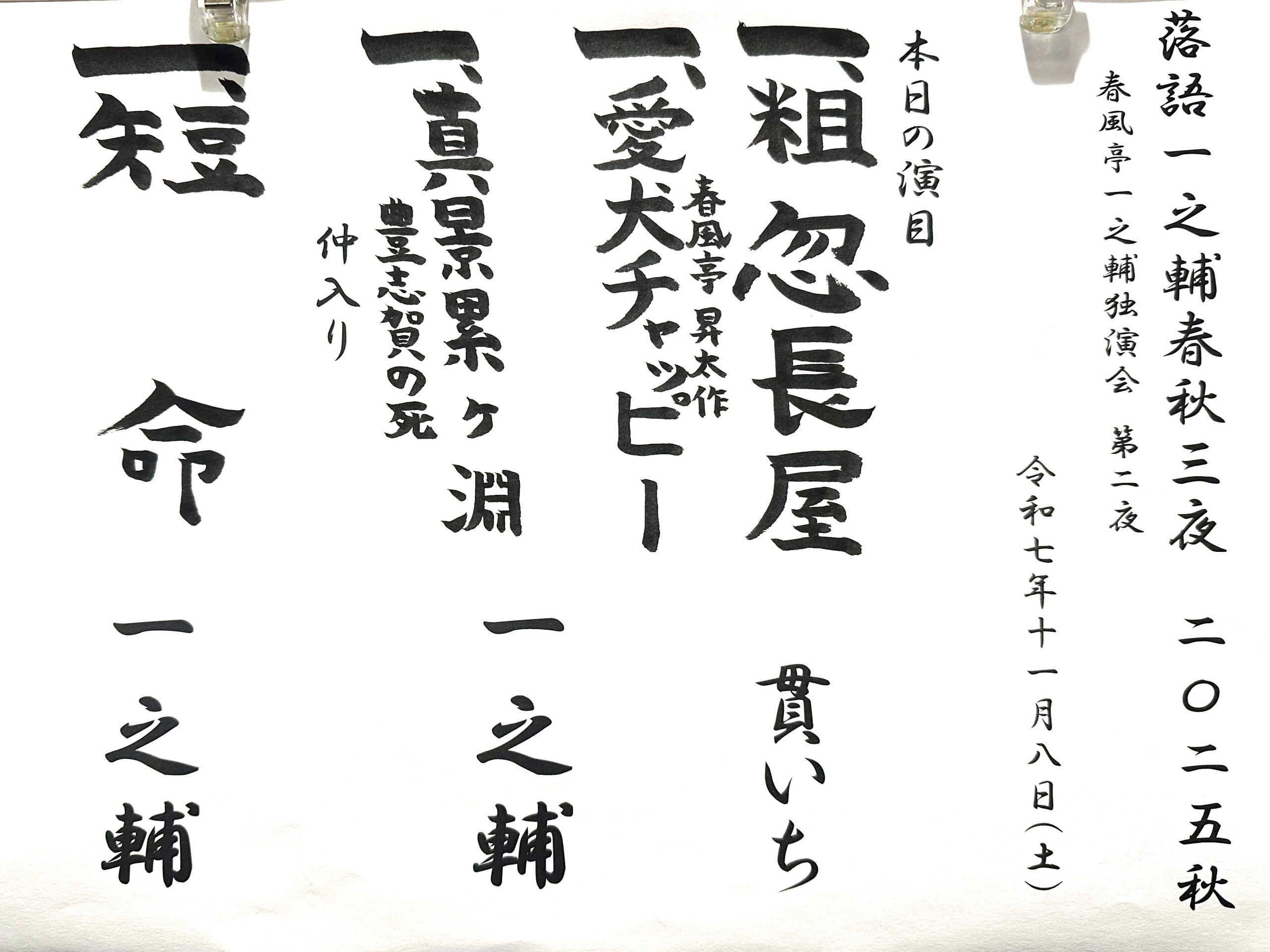 【演目】落語一之輔/春秋三夜 2025秋<第二夜>