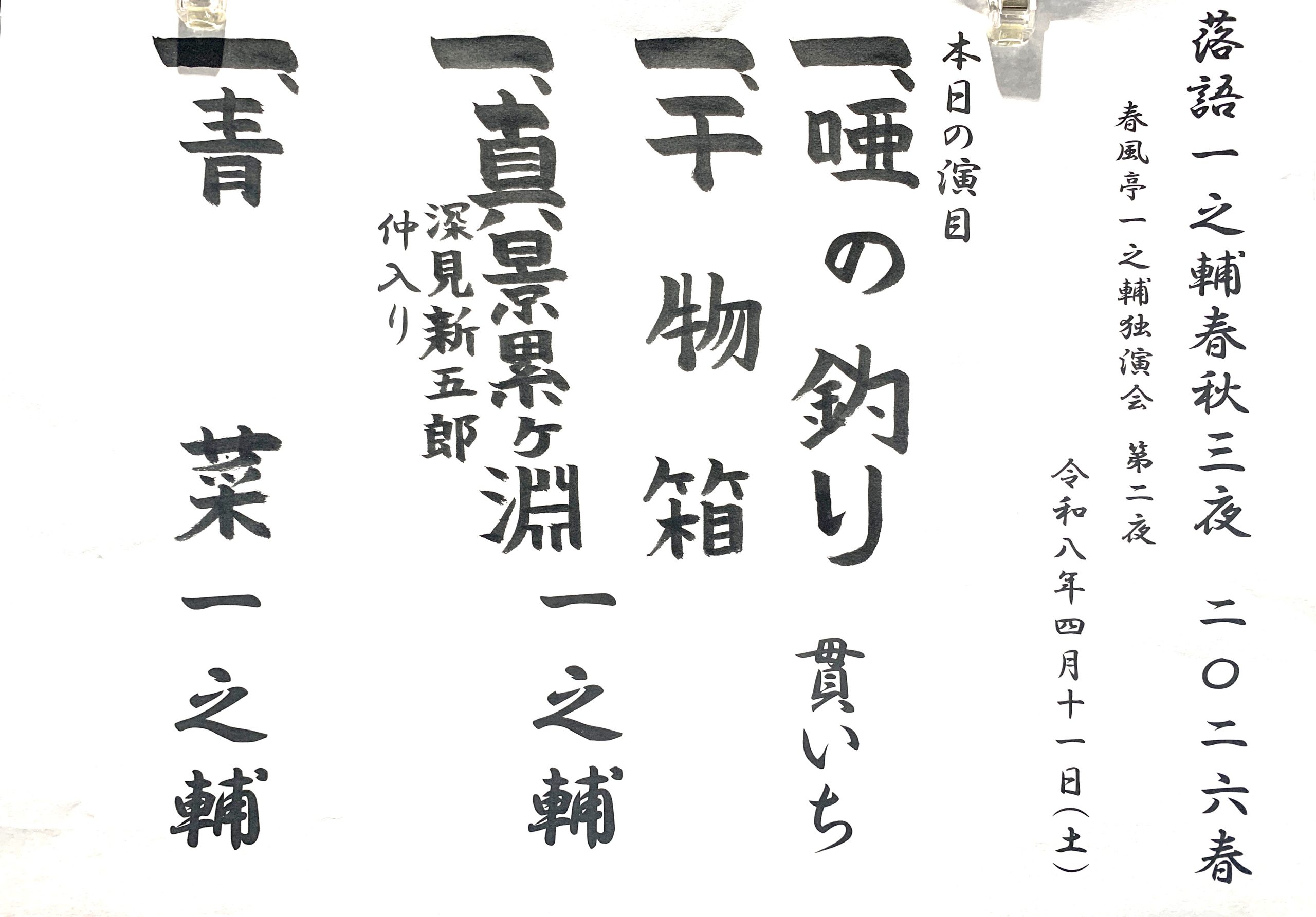 【演目】落語一之輔/春秋三夜 2026春<第二夜>